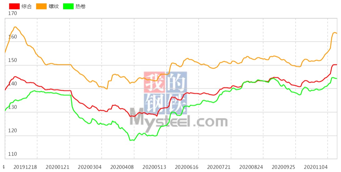 鋼坯周漲70 本周鋼材指數漲幅擴大
